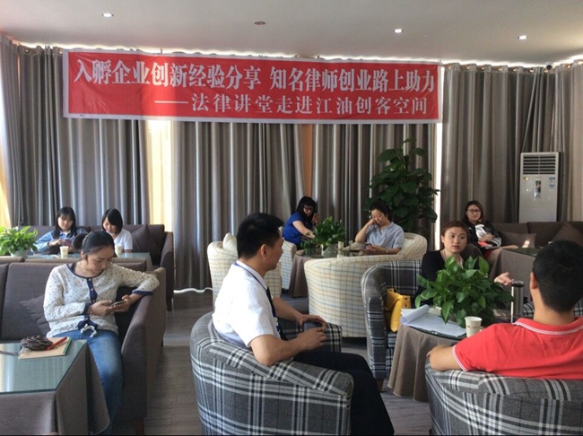 江油創客空間和江油科技孵化園攜太白律師事務所為入孵企業展開法律知識講座及企業創新經驗分享
